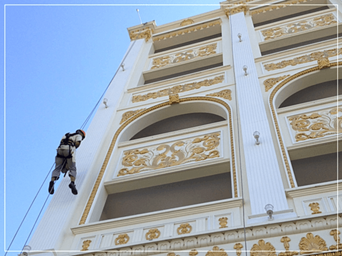 Yüksek binalarda yapılan işlemlerde iskele sistemlerinin hem maliyetinin yüksek olması hem de tehlike arz etmesinden dolayı endüstriyel dağcılık(iple erişim) gündeme geldi. KAR ENDÜSTRİYEL DAĞCILIK olarak çok katlı rezidans, otel, iş merkezi ve apartmanların dış cephelerinin temizlik, bakım ve tadilat işlemlerini, özel ekipman ve profesyonel kadromuzla yapıyoruz.